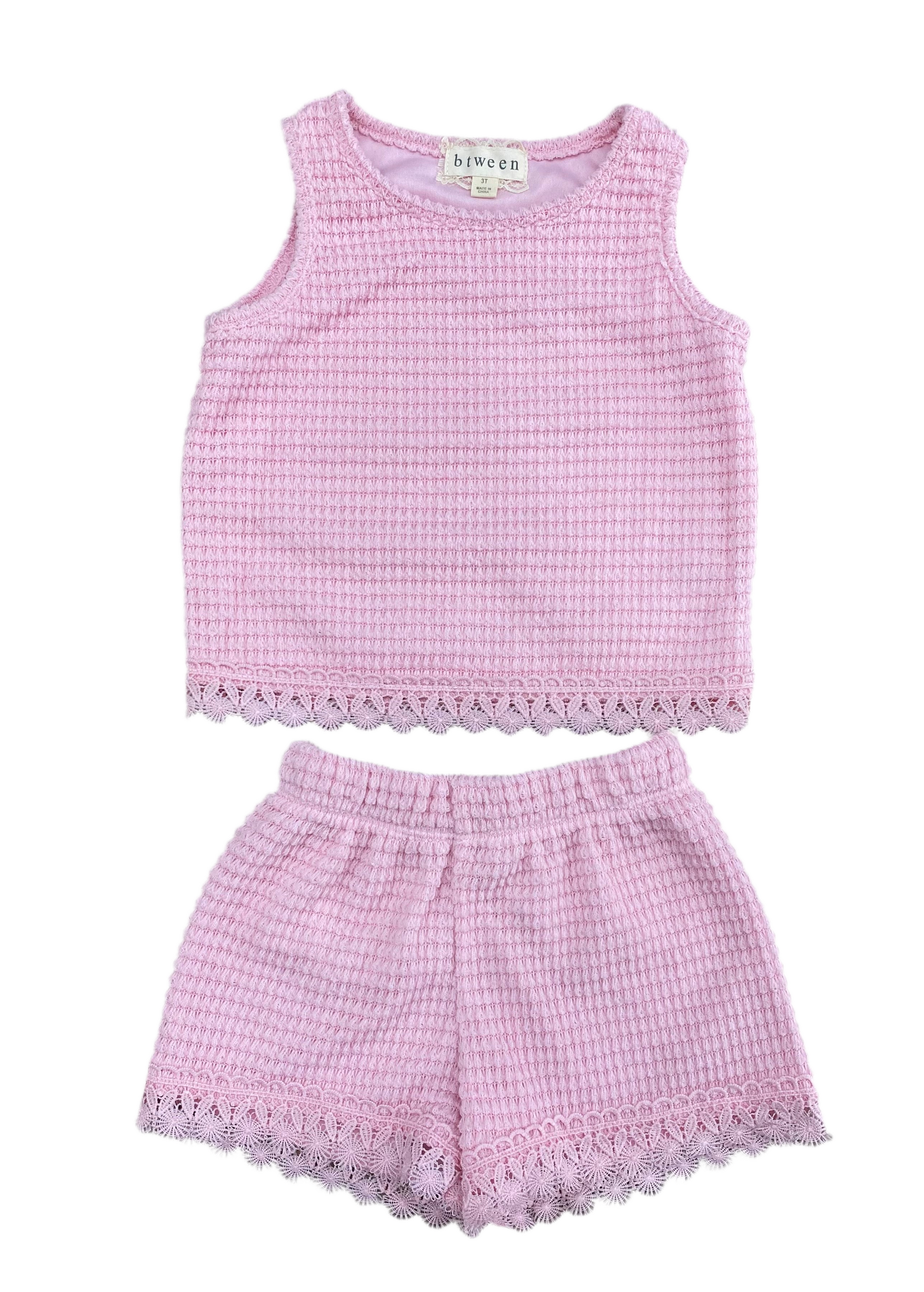 CONJUNTO 2 PIEZAS BLUSA SIN MANGAS/SHORT ROSA (3T)