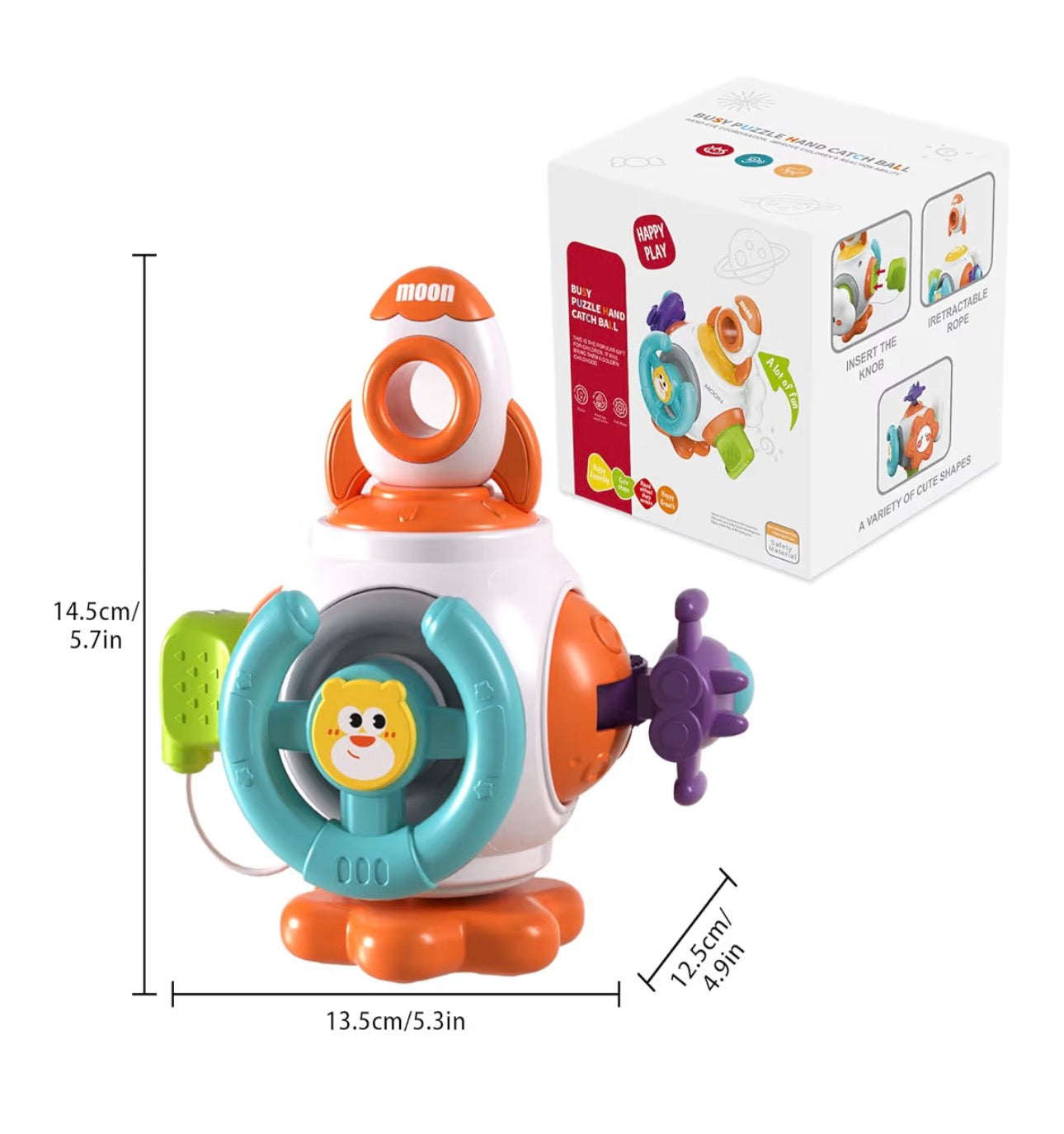 - Es un juguete sensorial con 6 actividades en 1, diseñado para niños mayores de 18 meses.