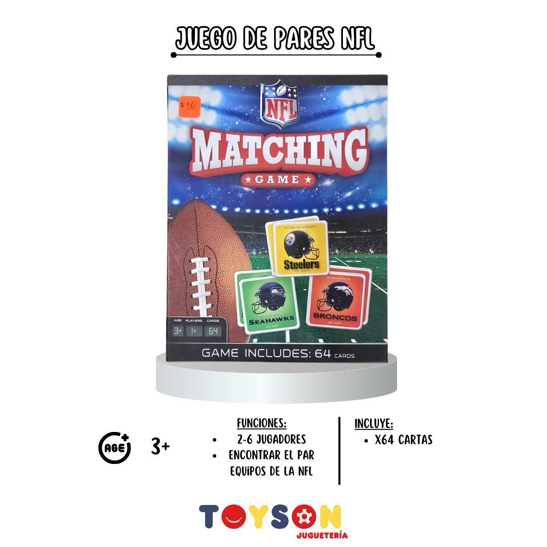 - El juego consiste en encontrar el par de cartas con los logos de los equipos más famosos de la NFL (EEUU)