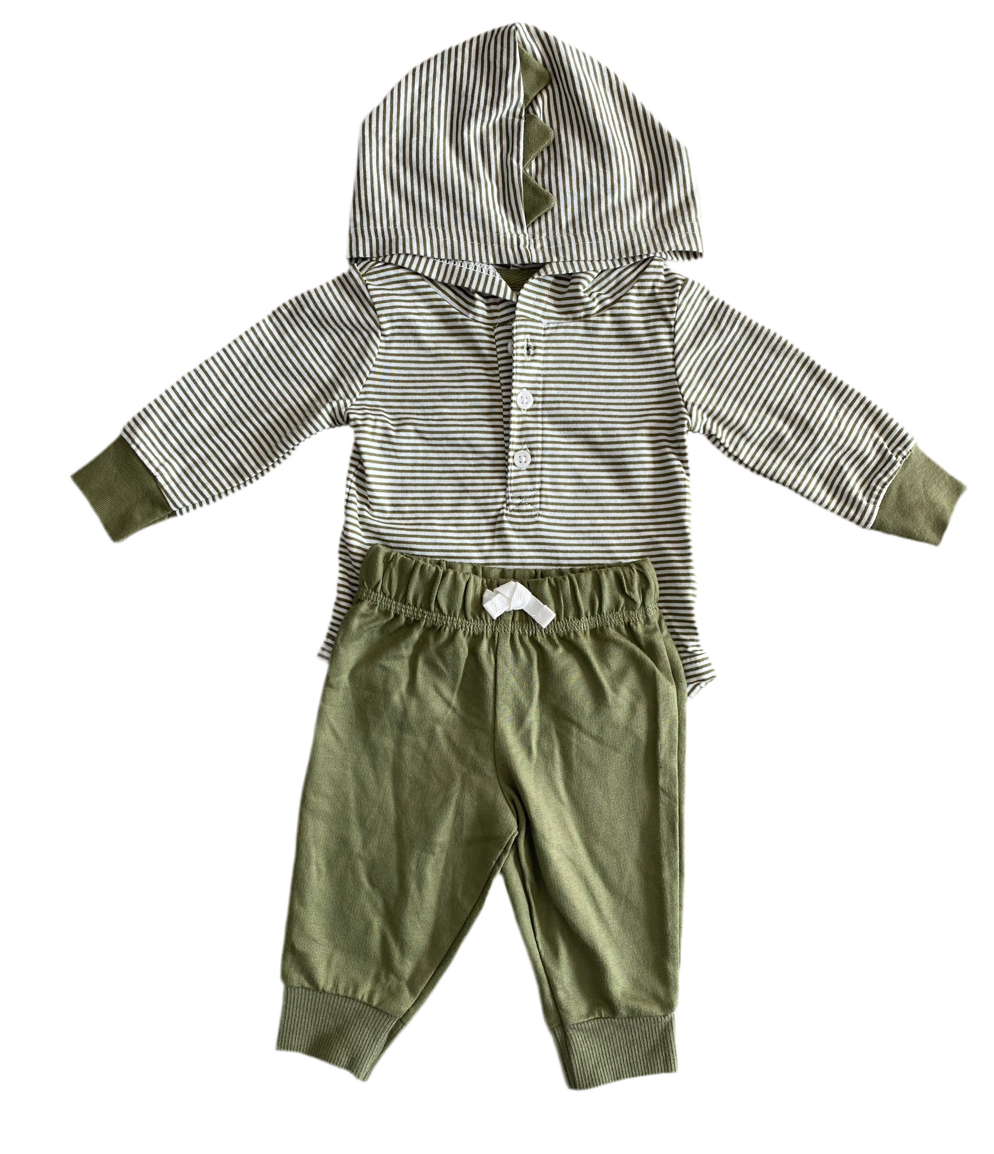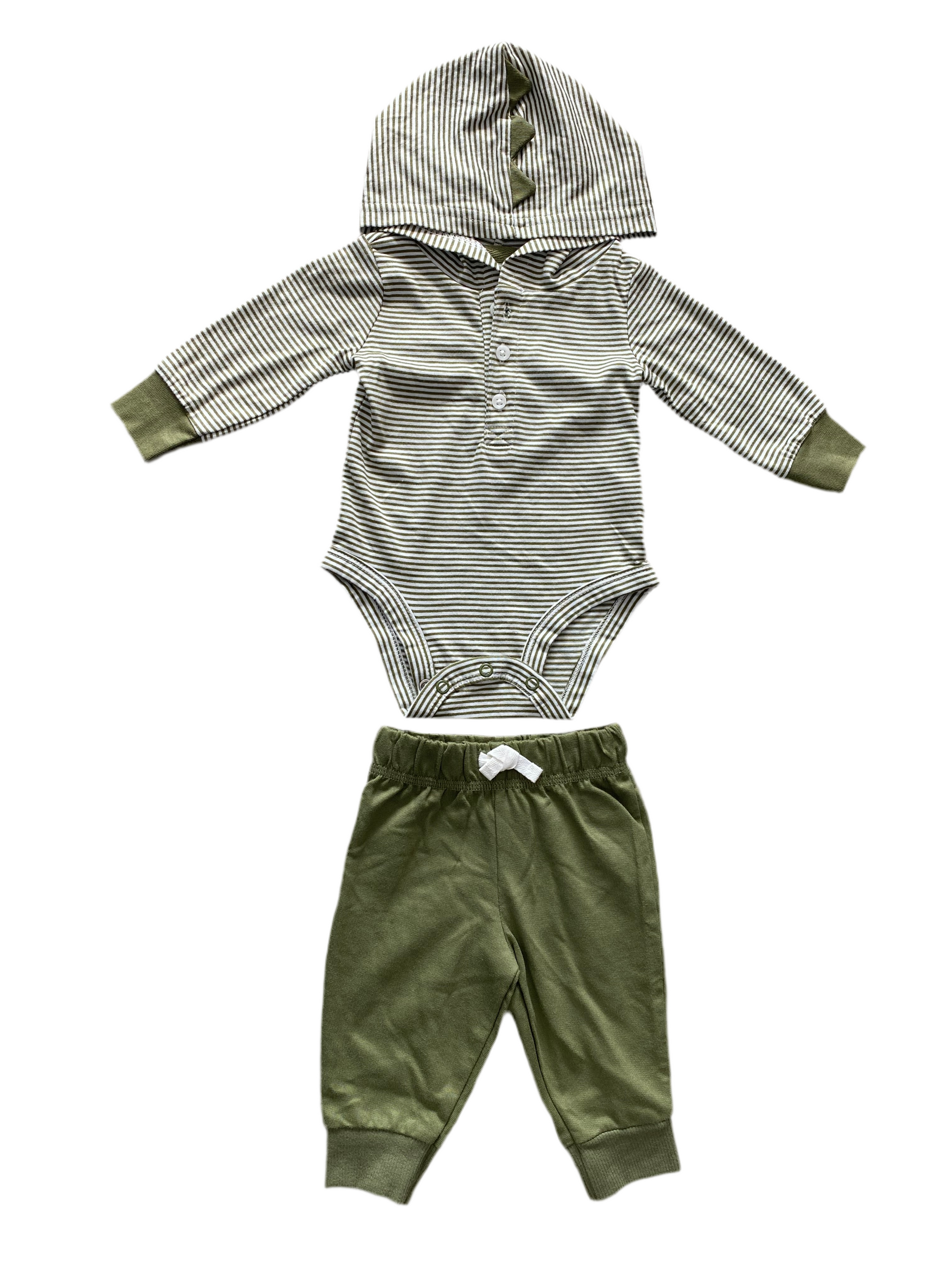 CONJUNTO 2 PIEZAS BODY MANGA LARGA CON CAPUCHA/PANTALÓN VERDE (3M)
