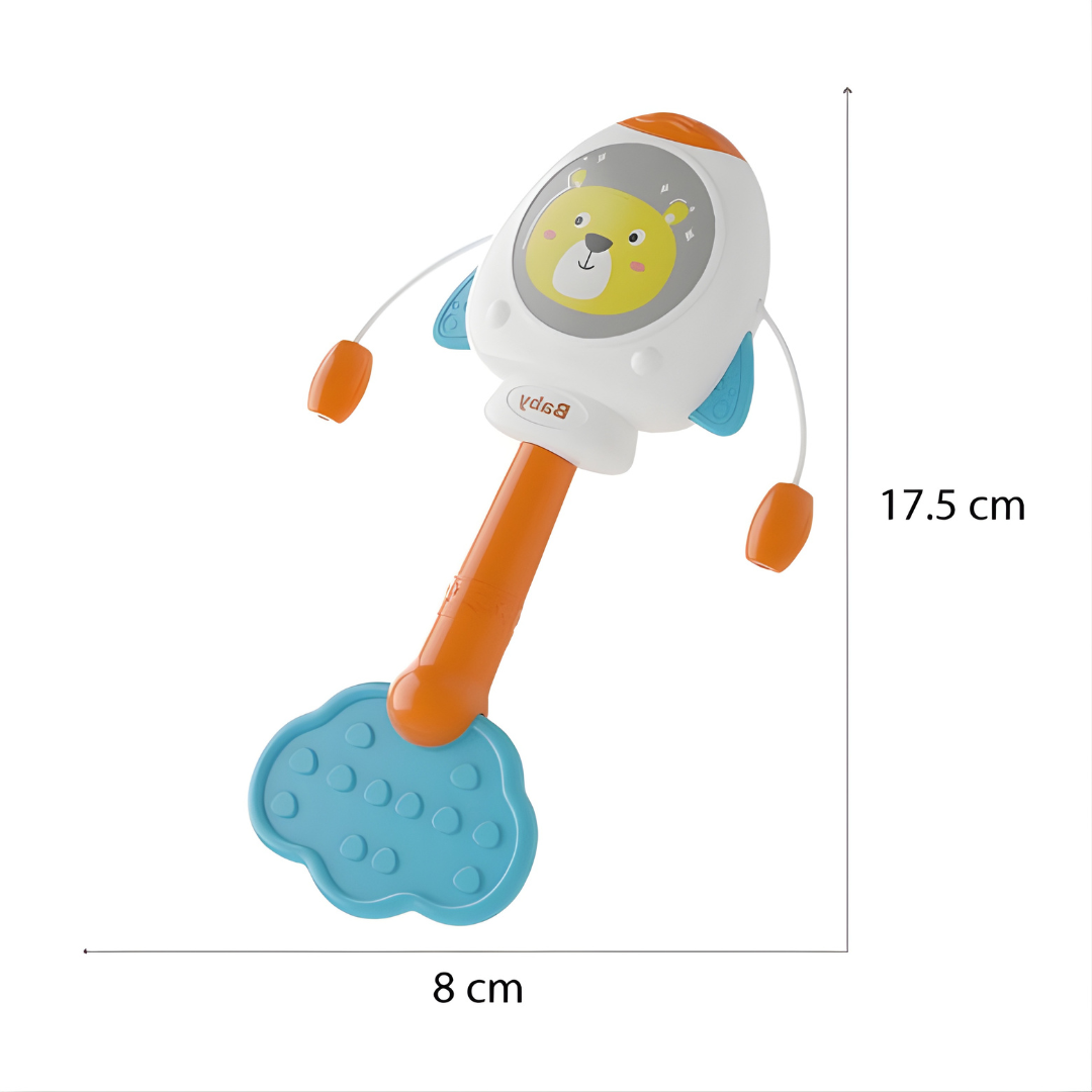 - Función 2 en 1: Combina las funciones de un sonajero (que emite sonidos al agitarlo) y un mordedor (alivia las molestias de la dentición).